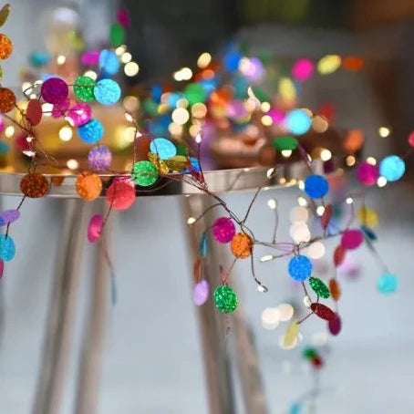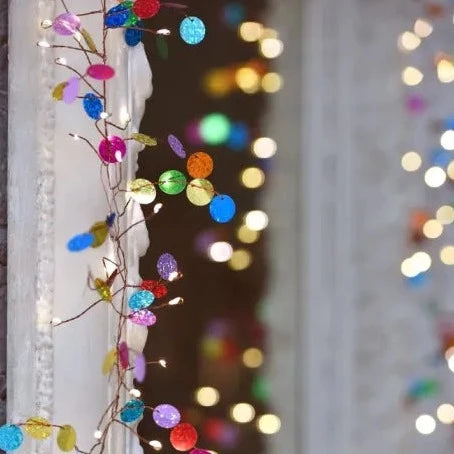 These fun, bright, multi coloured Rainbow Fairy Lights with foil discs have 120 warm white LEDs and create a cheerful glow wherever they`re placed. 5 meters long with a , they are ready for merriment all year round.