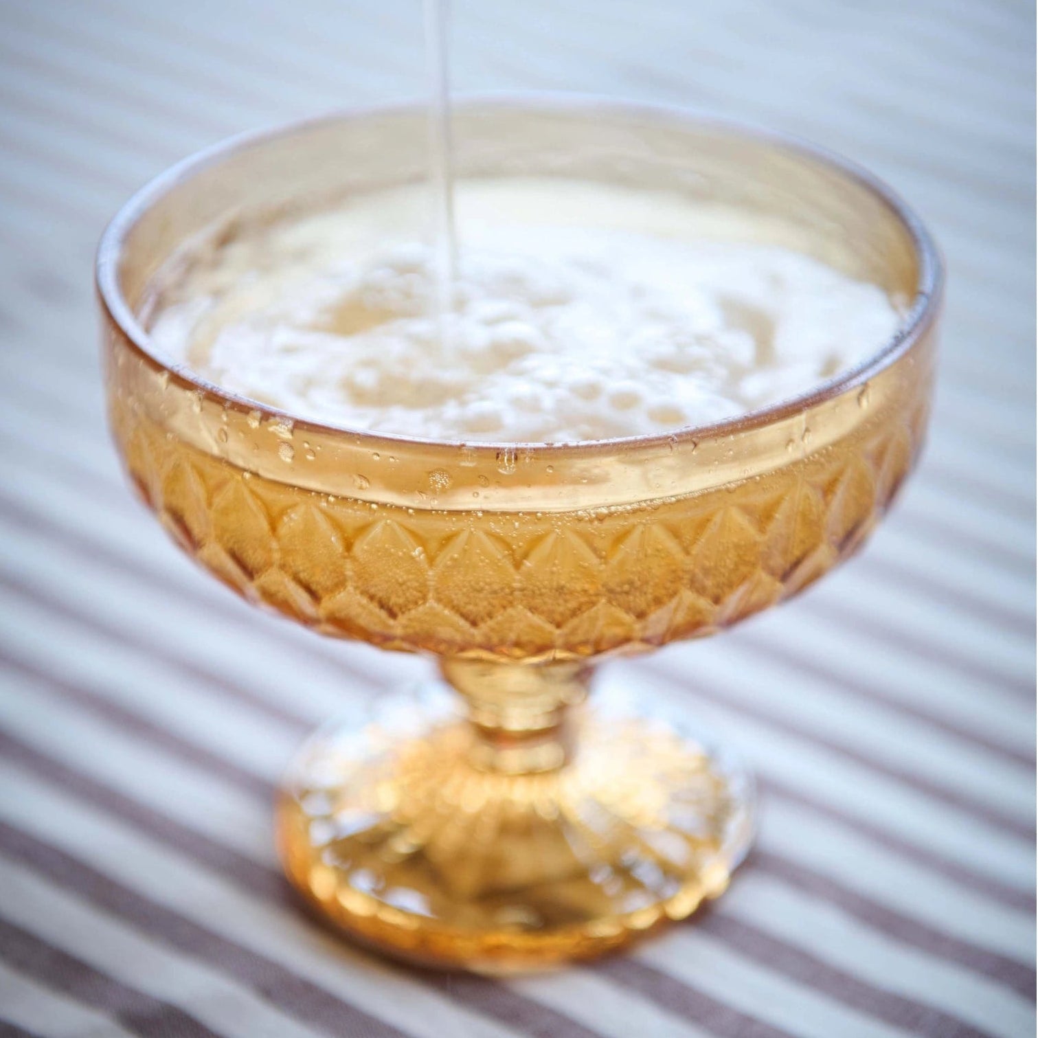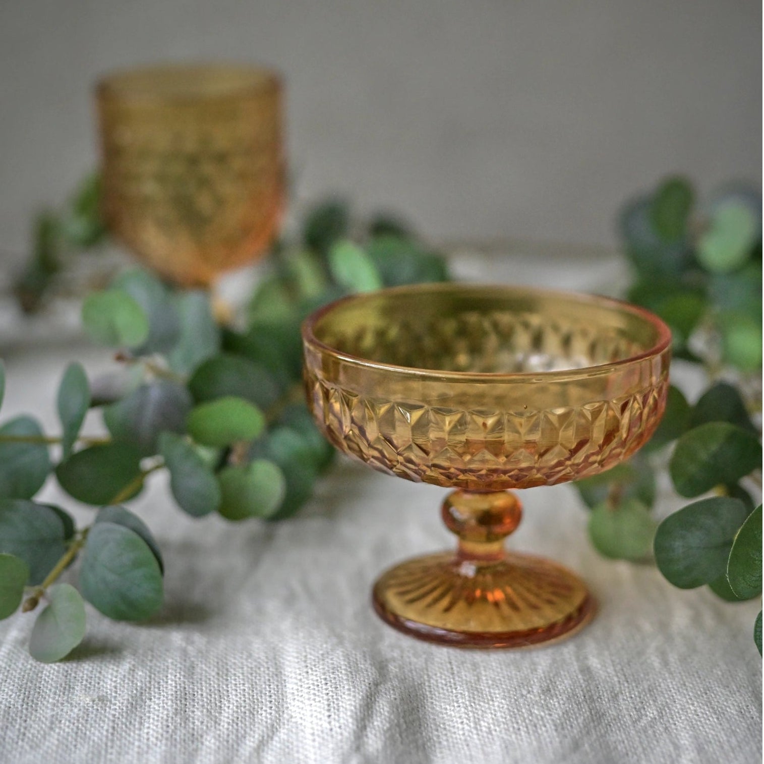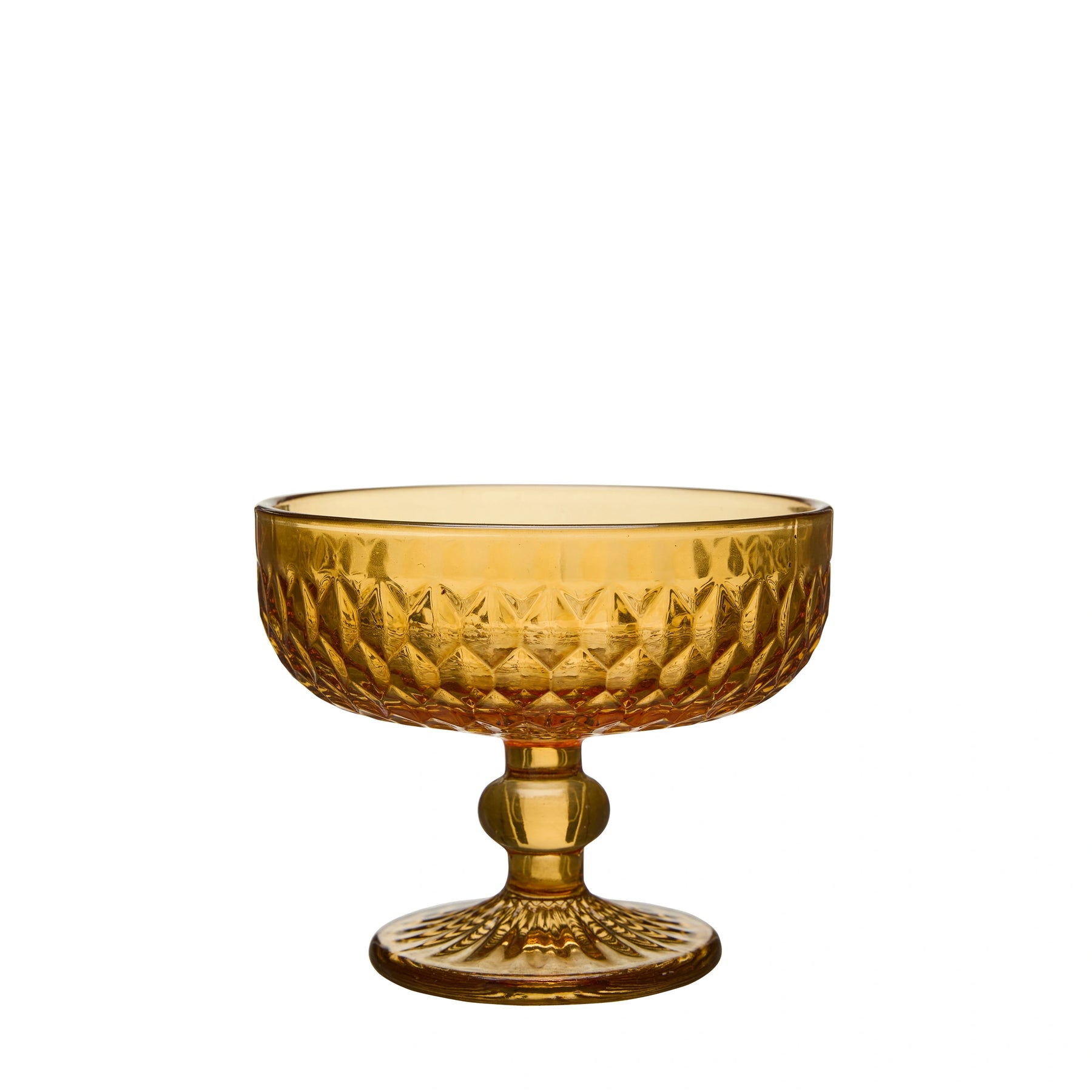 Bring the party spirit to your table with the ELLY Coupe glass in stunning amber. This vintage-inspired dessert coupe features gorgeous high-relief detailing that catches the light beautifully, transforming ordinary treats into show-stopping moments. Whether you're serving elegant desserts, cocktails, or champagne, its rich amber hue adds instant glamour and personality to any celebration. A timeless piece that turns every gathering into something special.